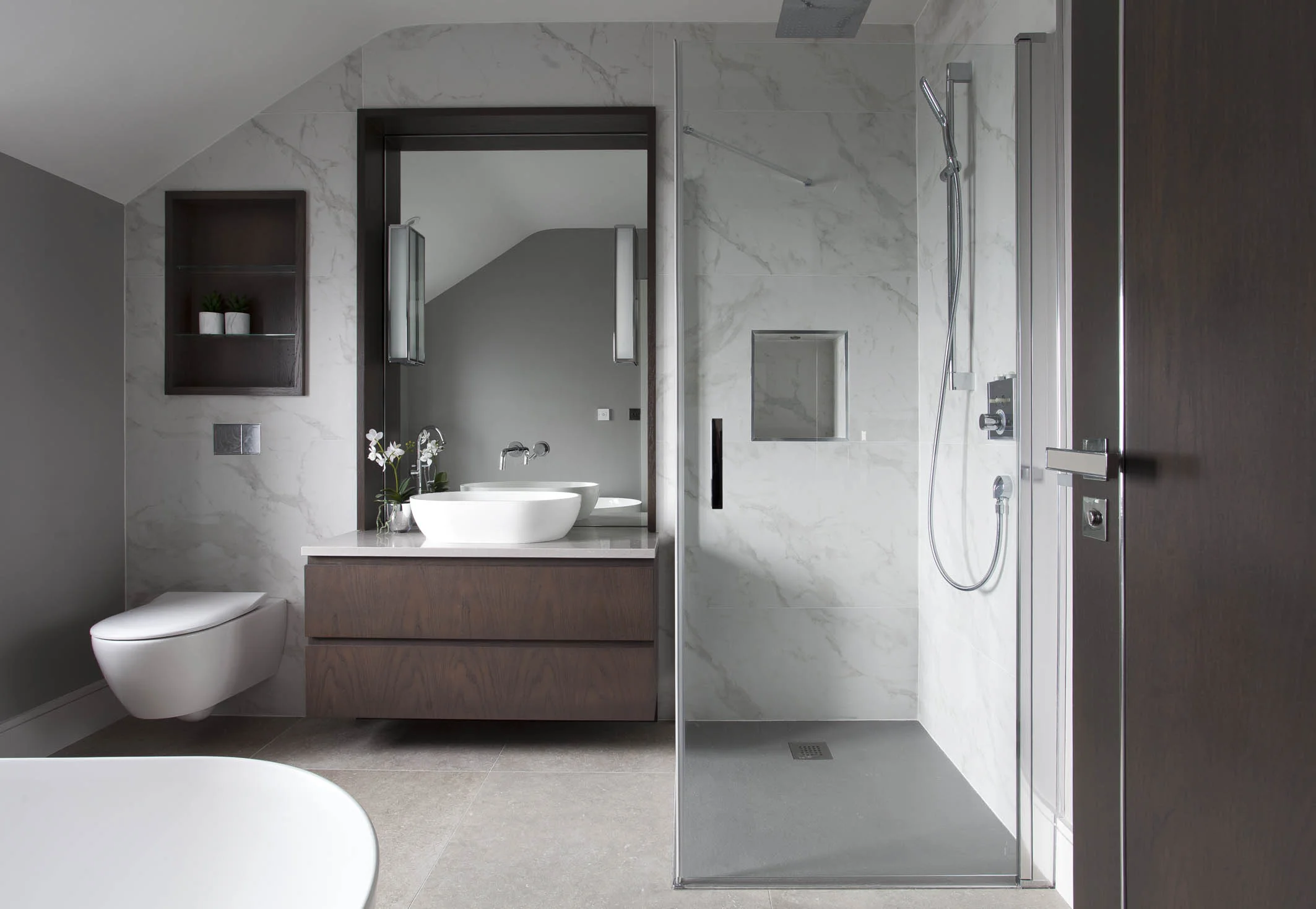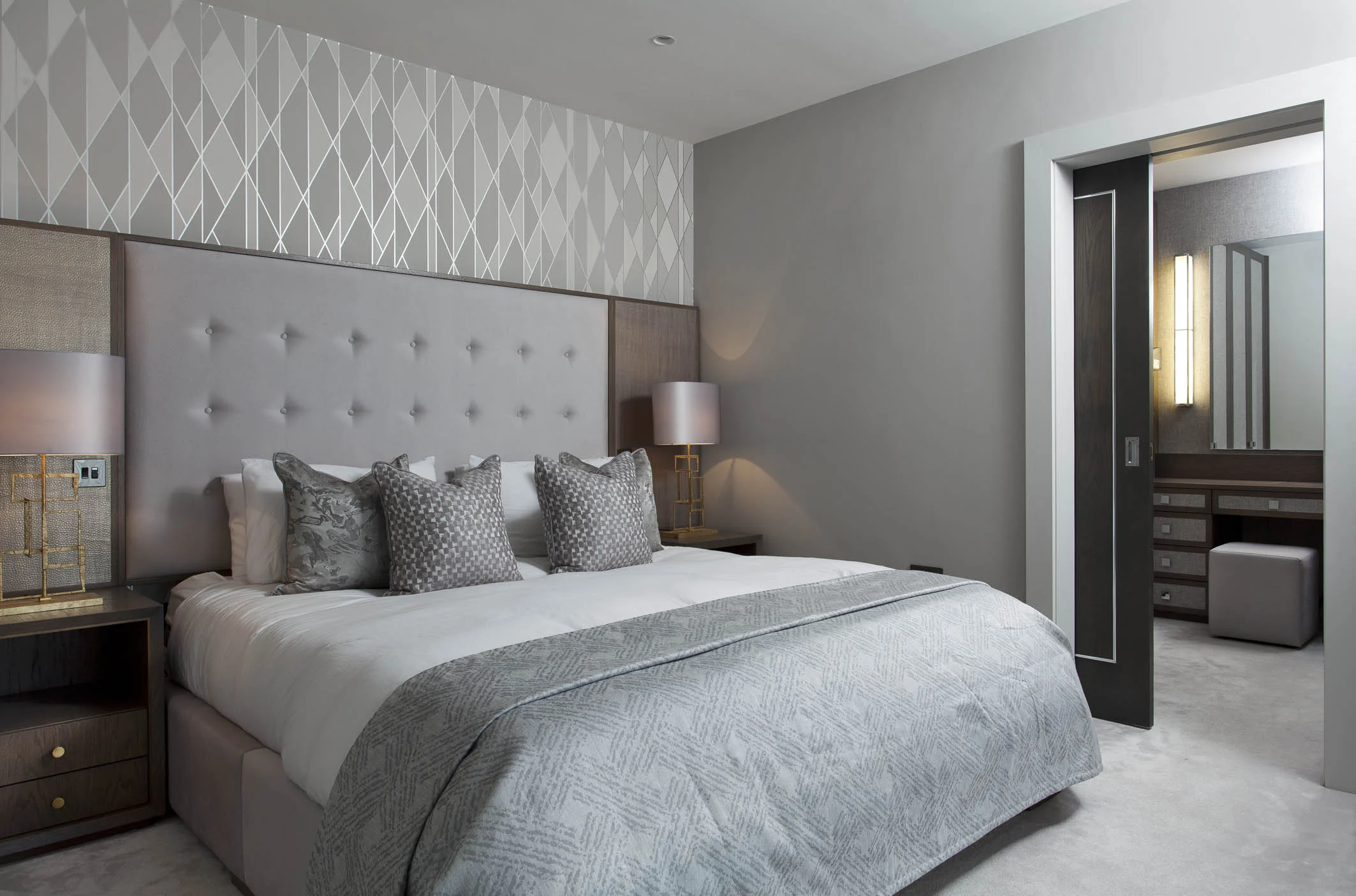 Contemporary, sophisticated design with a relaxed and calming palette of warm greys and natural materials, highlighted with metallic accents.